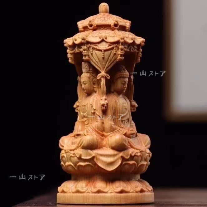 最高級 木彫仏像 娑婆三聖立像 彫刻 一刀彫 天然木檜材 時代美品 修縁堂】大迫力 木彫り 仏像 千手観音菩薩座像 彫刻 一刀彫 天然木